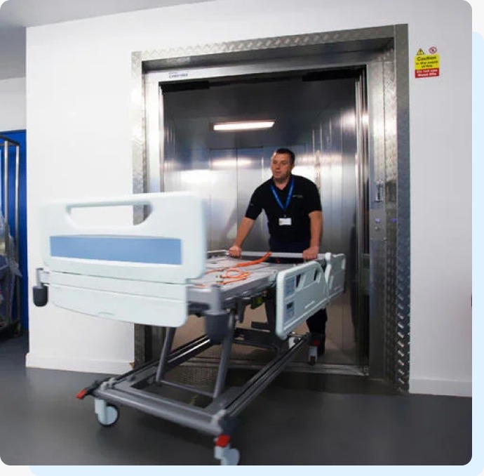 Hospital elevators operate far more frequently than those in residential or commercial buildings, demanding higher durability and reliability. We design our hospital lifts using robust materials and maintain them with strict quality standards to ensure consistent performance.